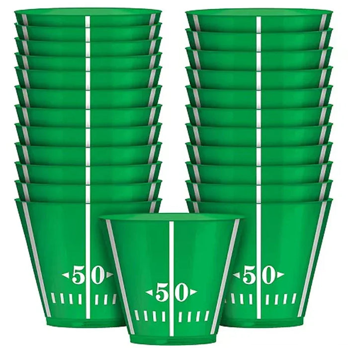 Toast to your favorite team with Football Field Plastic Cups. Each green plastic cup is printed with white yard lines to look like a football field. These versatile and durable plastic tumblers can be used for drinks, snacks, and desserts and match the football party decorations at your game day event.